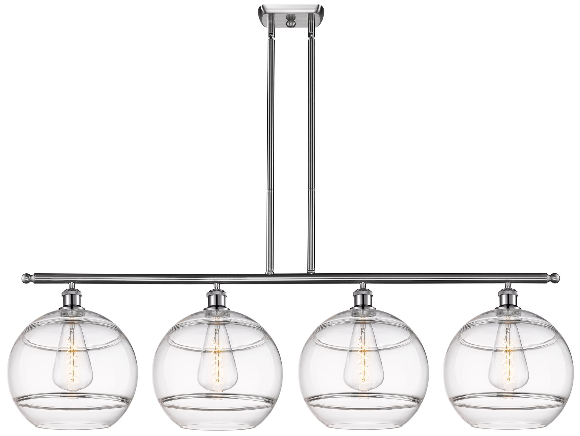 Rochester 50.25"W 4-Light Satin Nickel Stem Island Light w/ Clear Shad