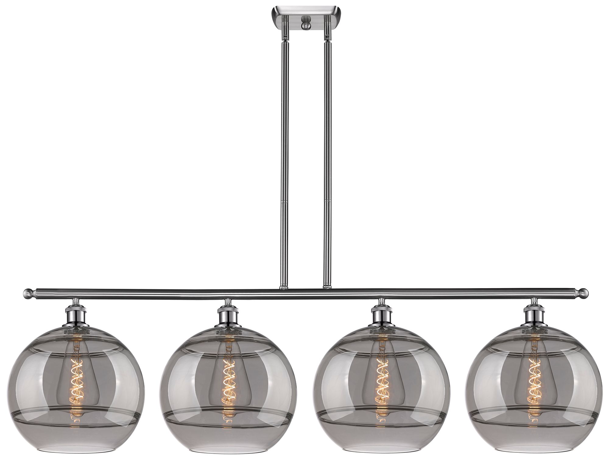 Rochester 50.25"W 4-Light Satin Nickel Stem Island Light w/ Smoke Shad