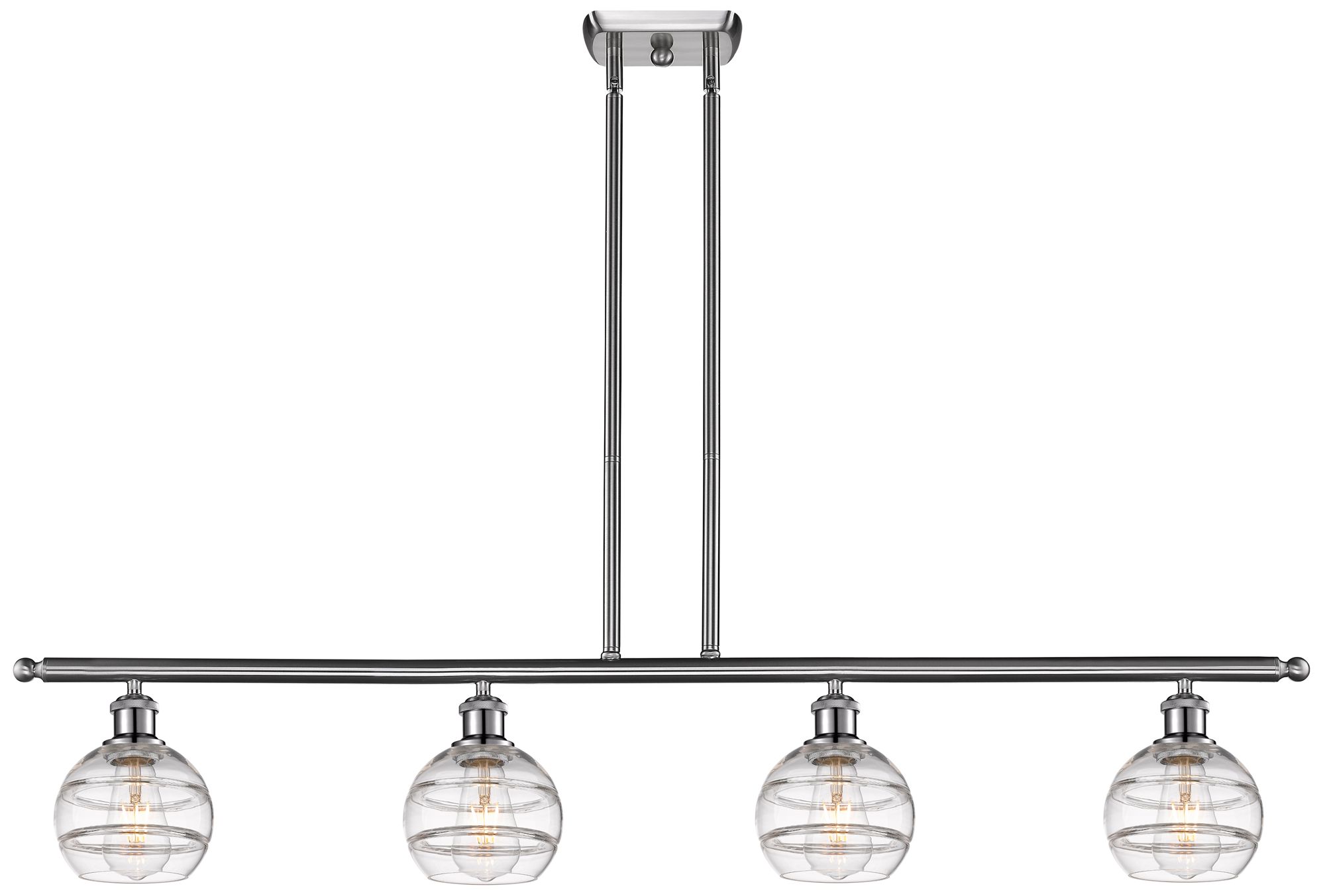 Rochester 48"W 4-Light Satin Nickel Stem Island Light w/ 6" Clear