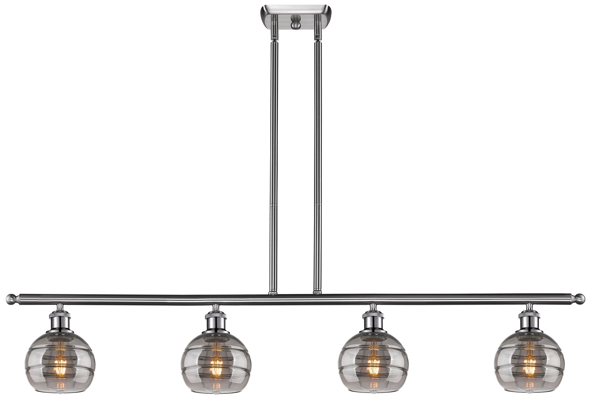 Rochester 48"W 4-Light Satin Nickel Stem Island Light w/ 6" Smoke