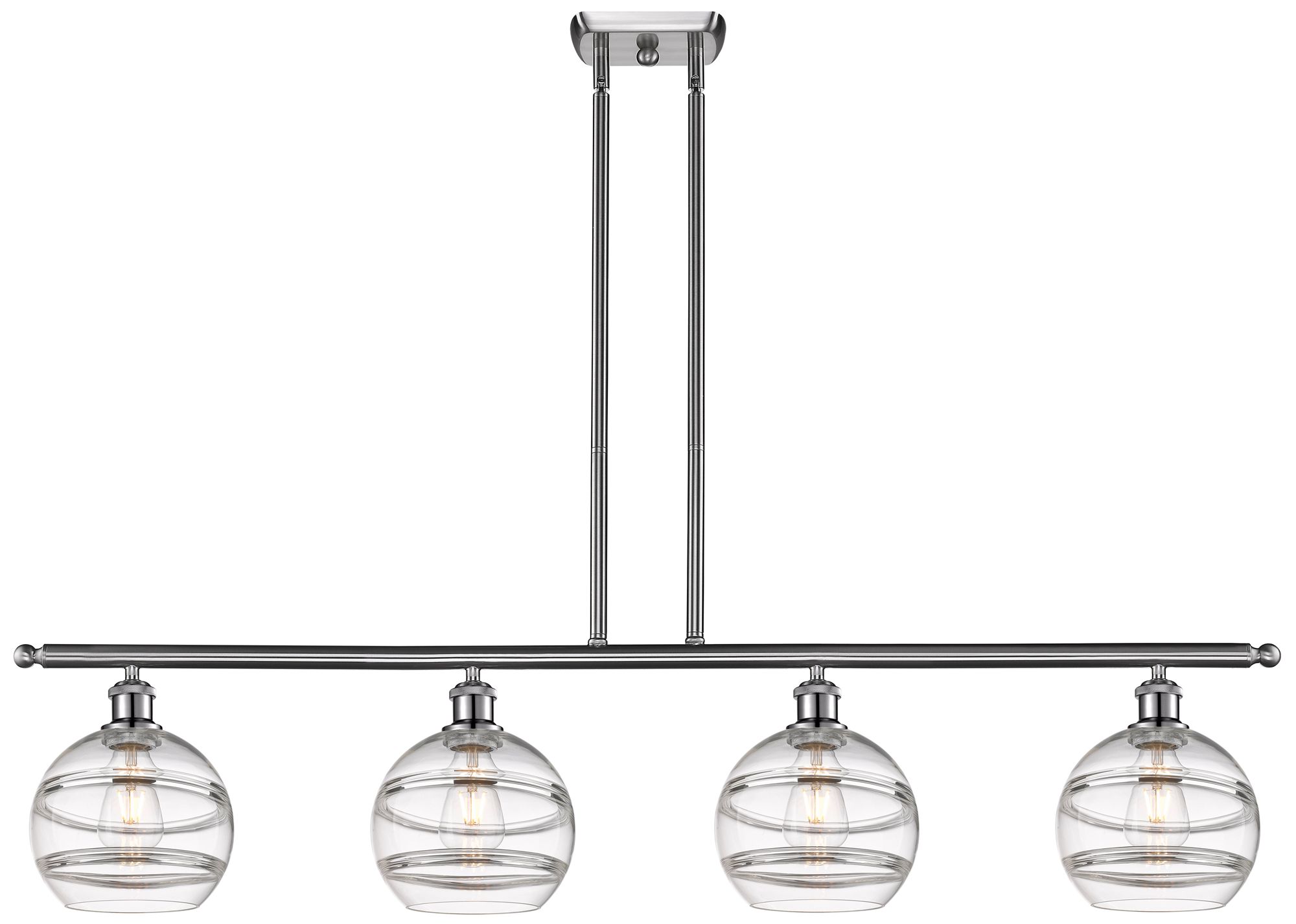 Rochester 48"W 4-Light Satin Nickel Stem Island Light w/ 8" Clear