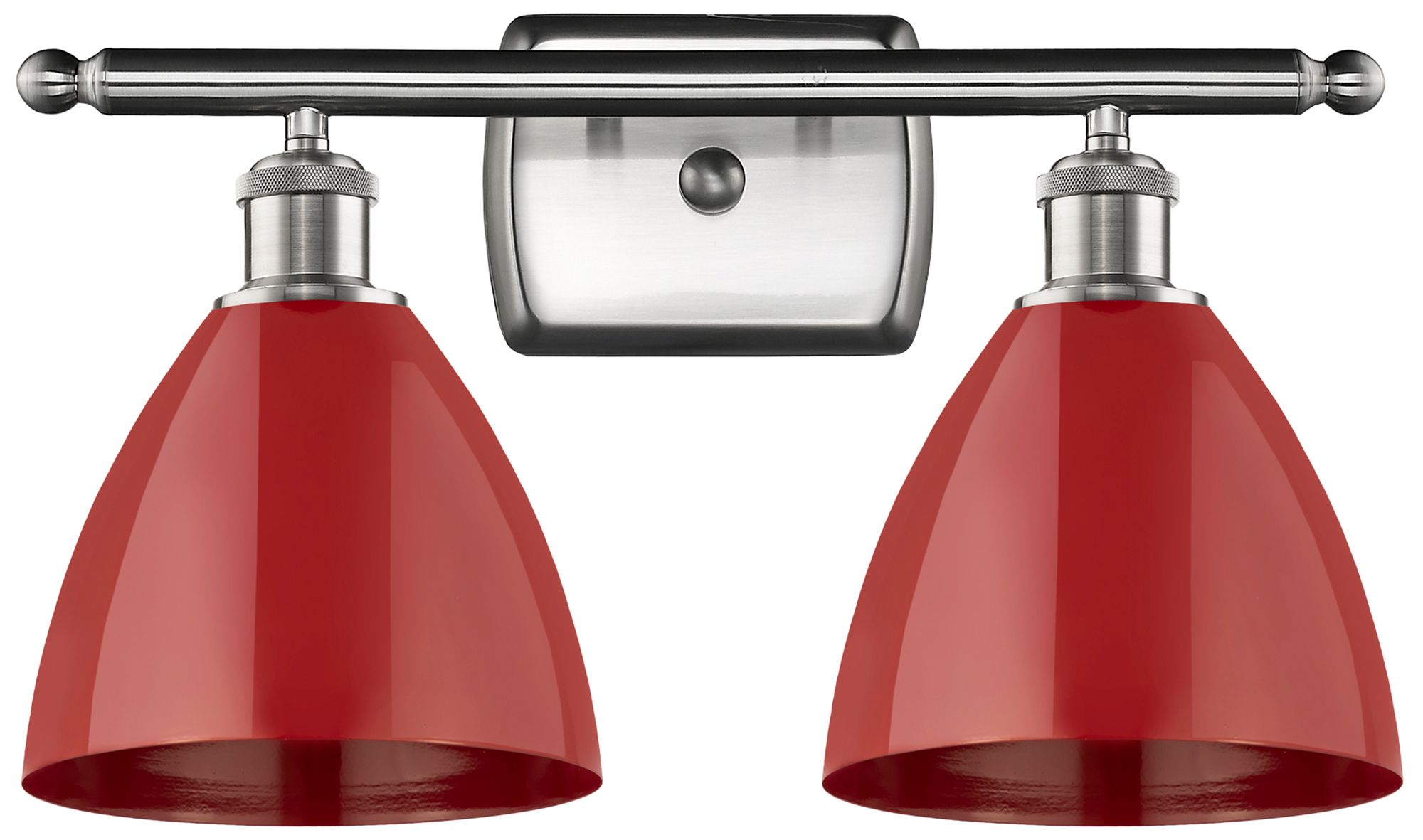 Plymouth Dome 17.5"W 2 Light Brushed Nickel Bath Light w/ Red Shade