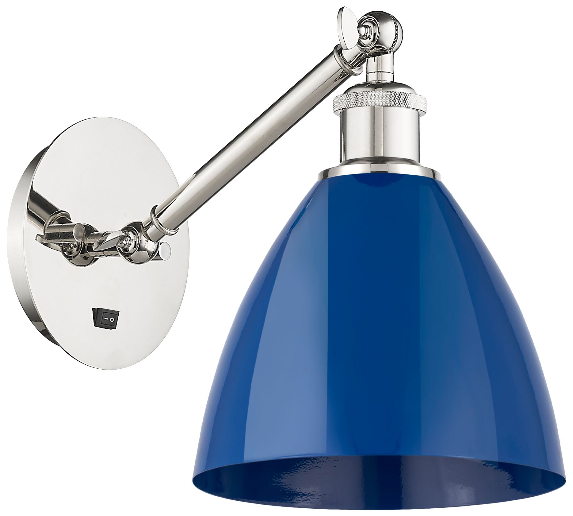 Ballston Plymouth Dome 13.25" High Polished Nickel Sconce w/ Blue Shad