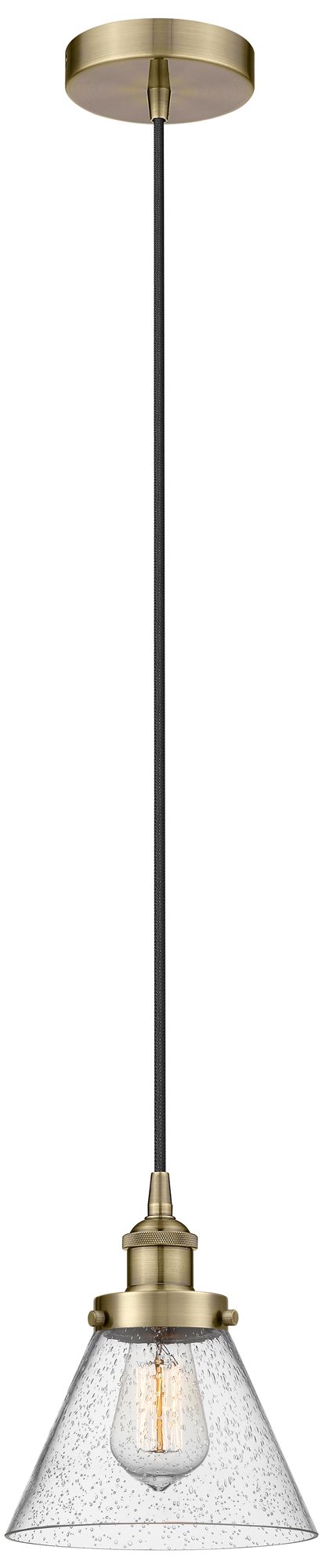 Cone 8" Antique Brass Mini Pendant w/ Seedy Shade