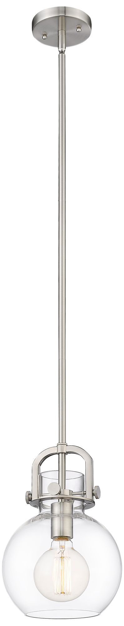 Newton Sphere 8" Wide Stem Hung Satin Nickel Pendant With Clear Shade