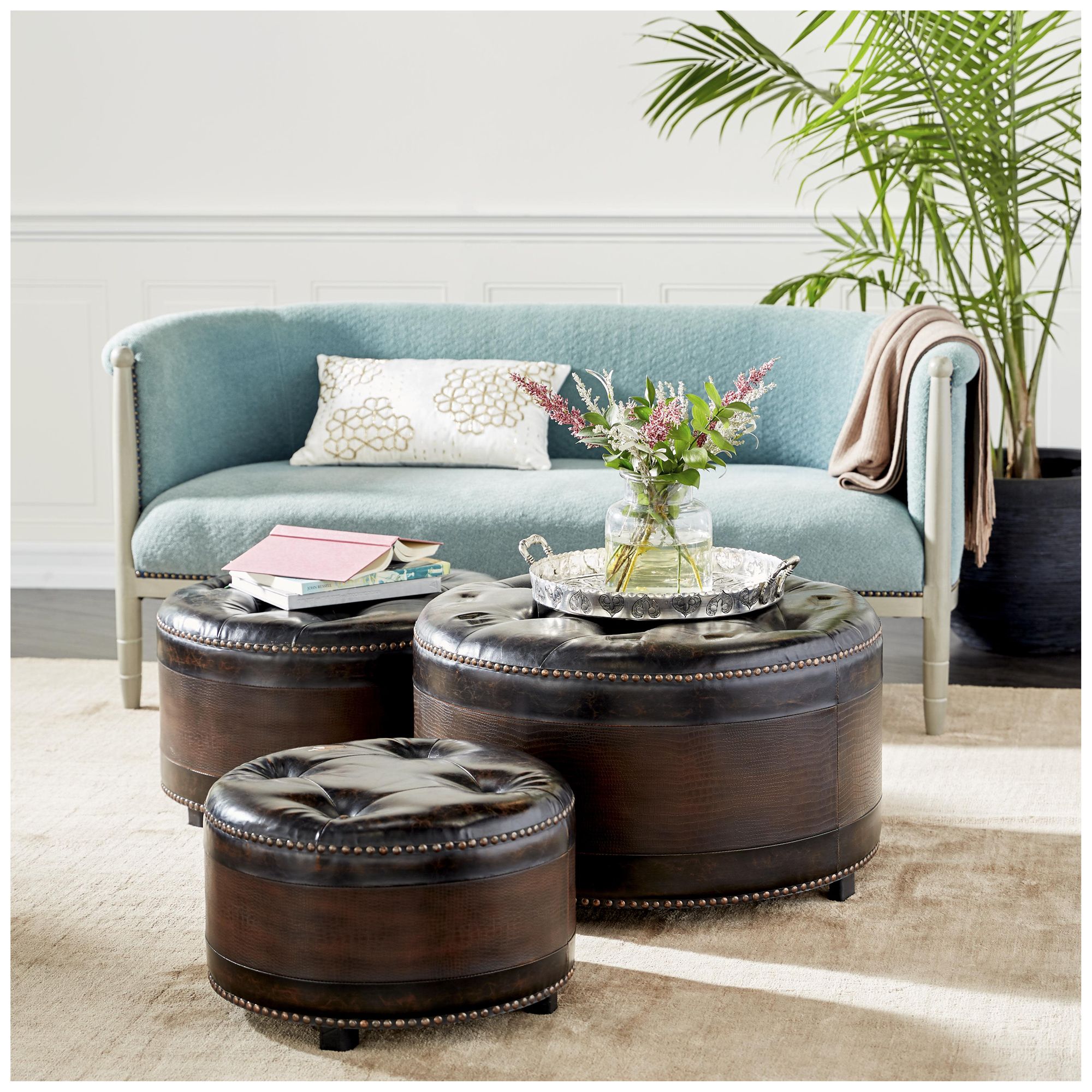 Dark Brown Wooden Traditional Storage Ottoman, S/3 29", 25", 20"W