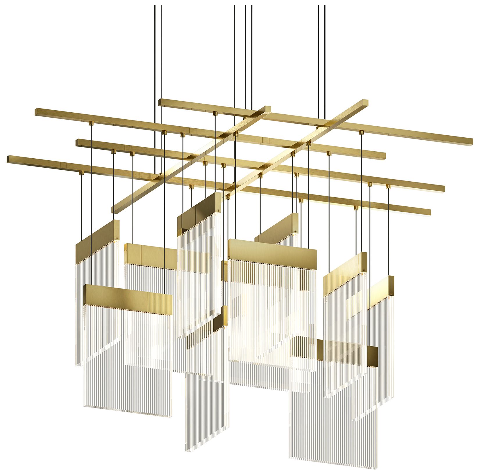 V Panels 46.75" Wide Large Brass Pendant