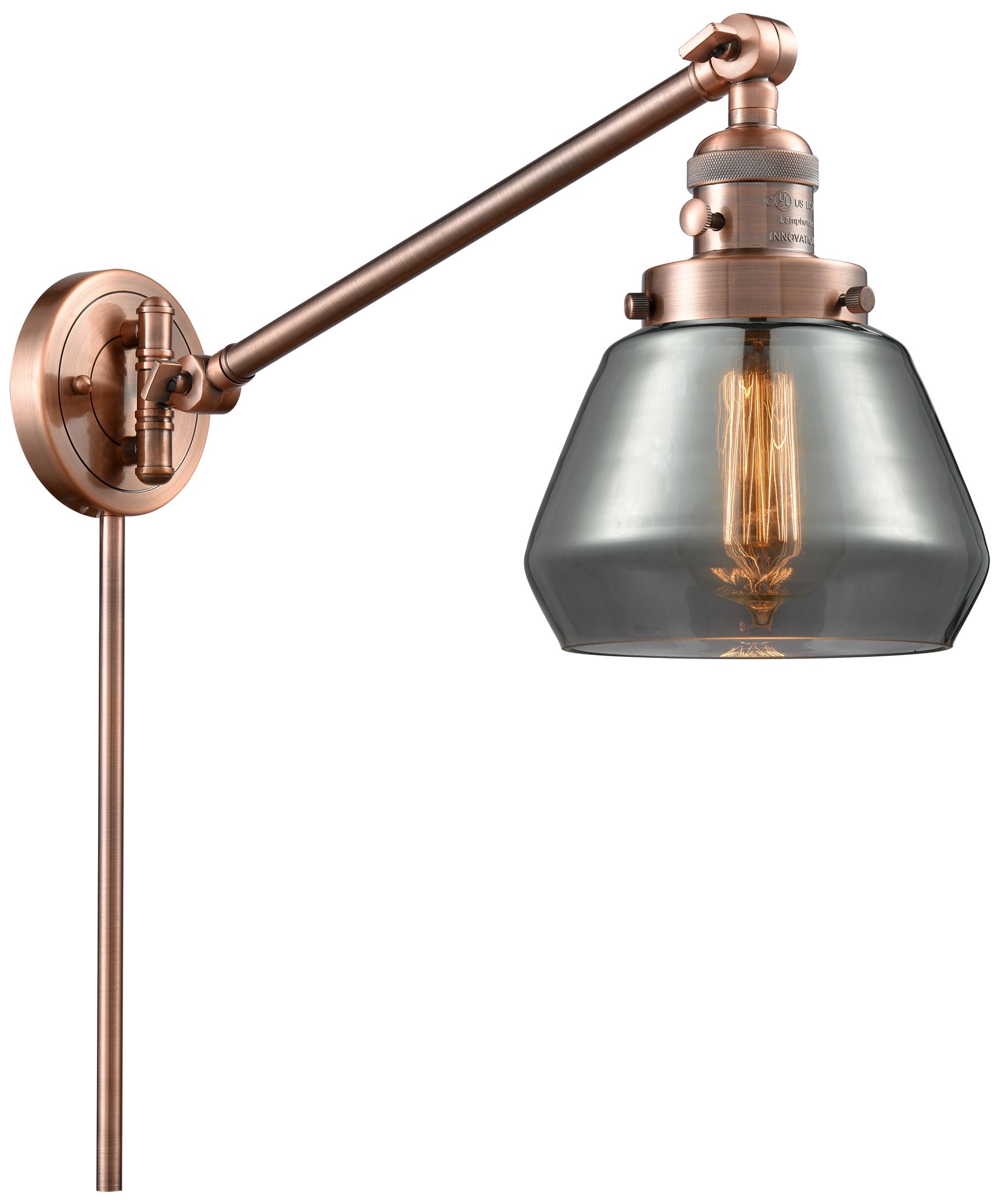 Fulton 8" Antique Copper Swing Arm w/ Plated Smoke Shade