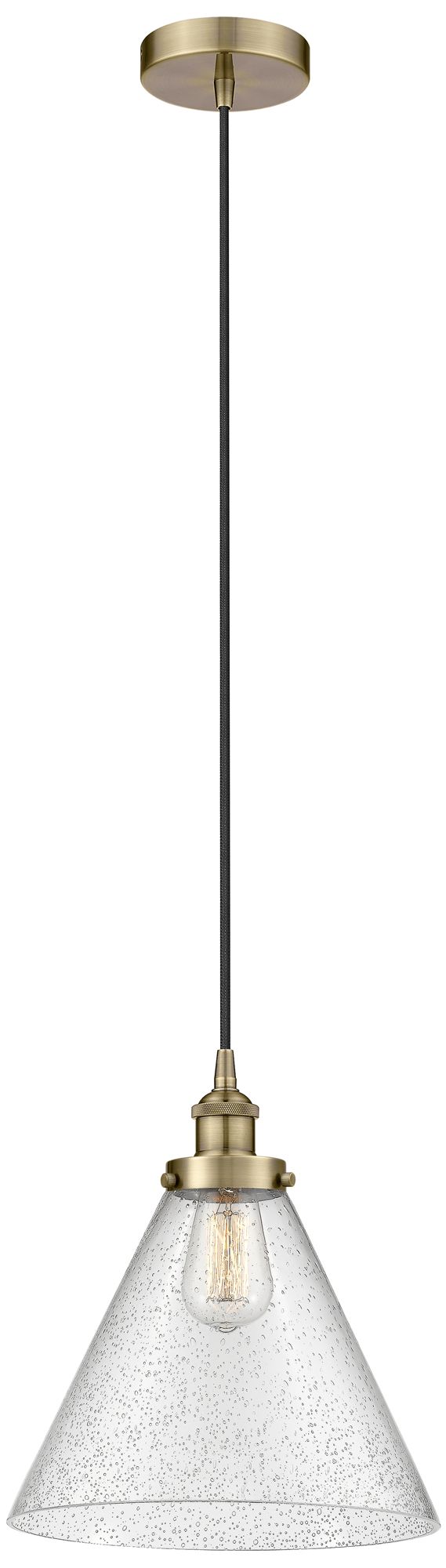 Cone 12" Antique Brass Mini Pendant w/ Seedy Shade