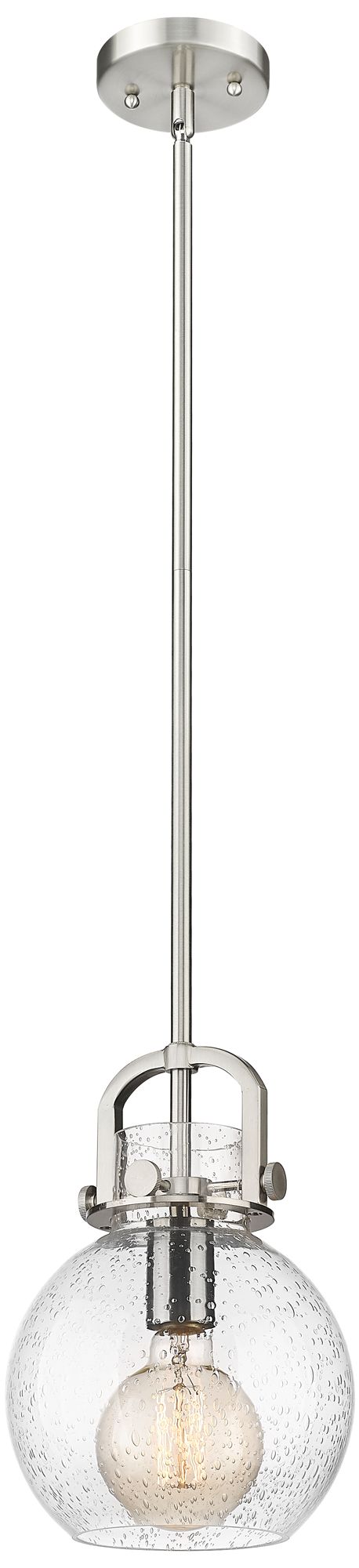 Newton Sphere 8" Wide Stem Hung Satin Nickel Pendant With Seedy Shade
