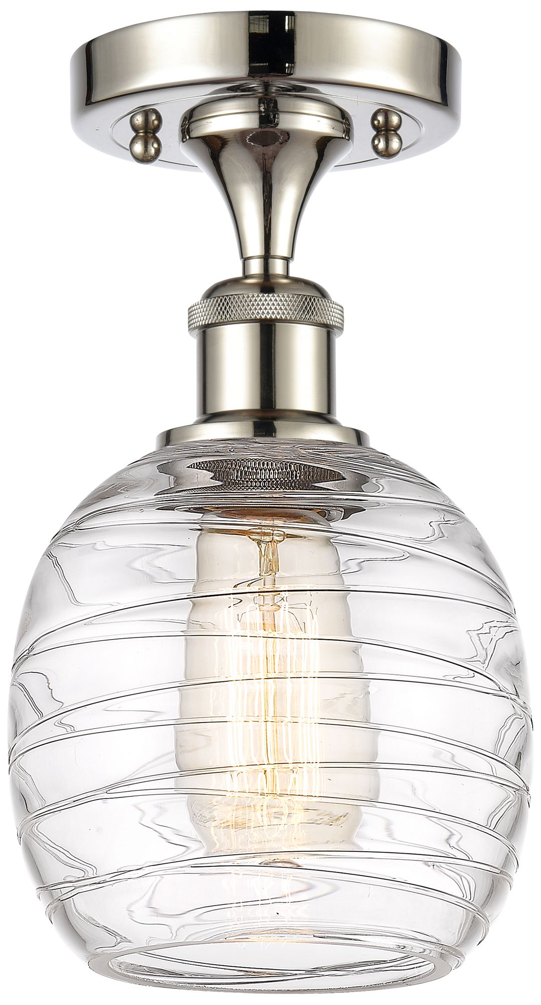 Belfast 6" LED Semi-Flush Mount - Polished Nickel - Deco Swirl Shade