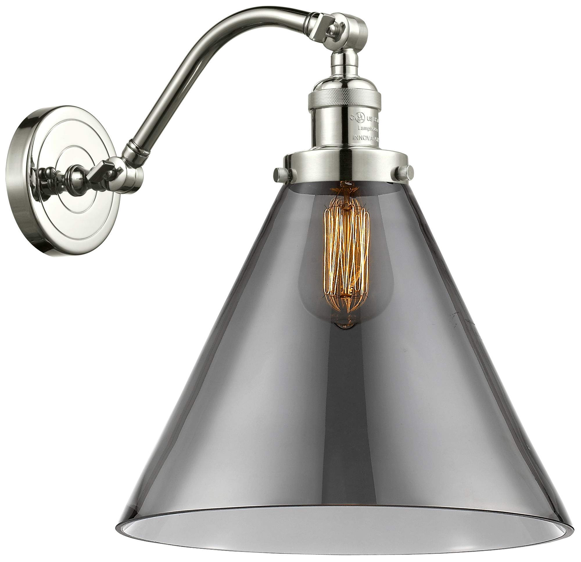 Cone 14" High Polished Nickel Sconce w/ Plated Smoke Shade