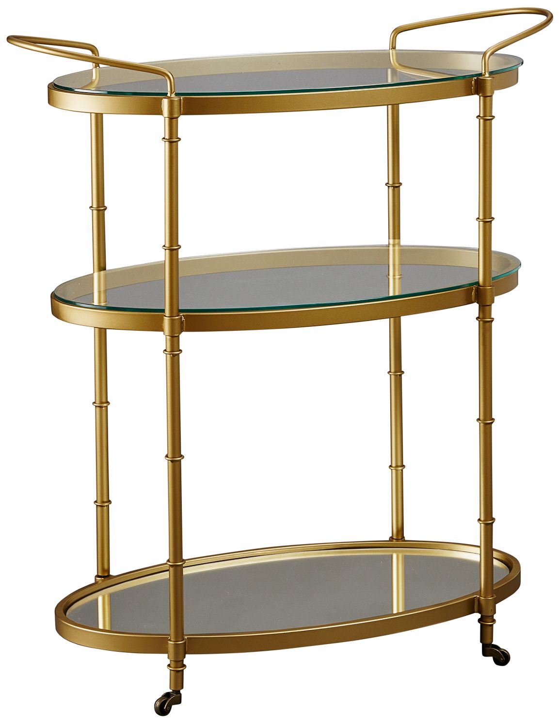 Audrey 32 1/4" Wide Gold Metal Wheel Tea Cart or Bar Cart