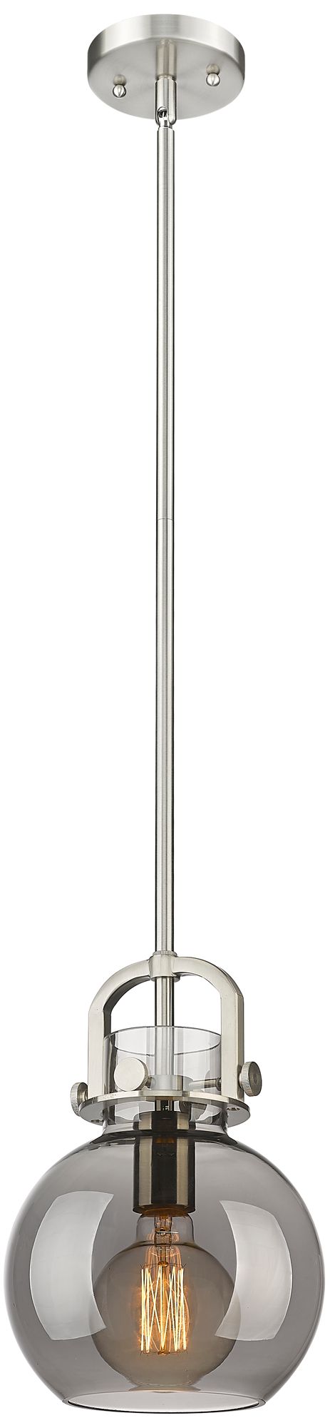 Newton Sphere 8" Wide Stem Hung Satin Nickel Pendant With Smoke Shade