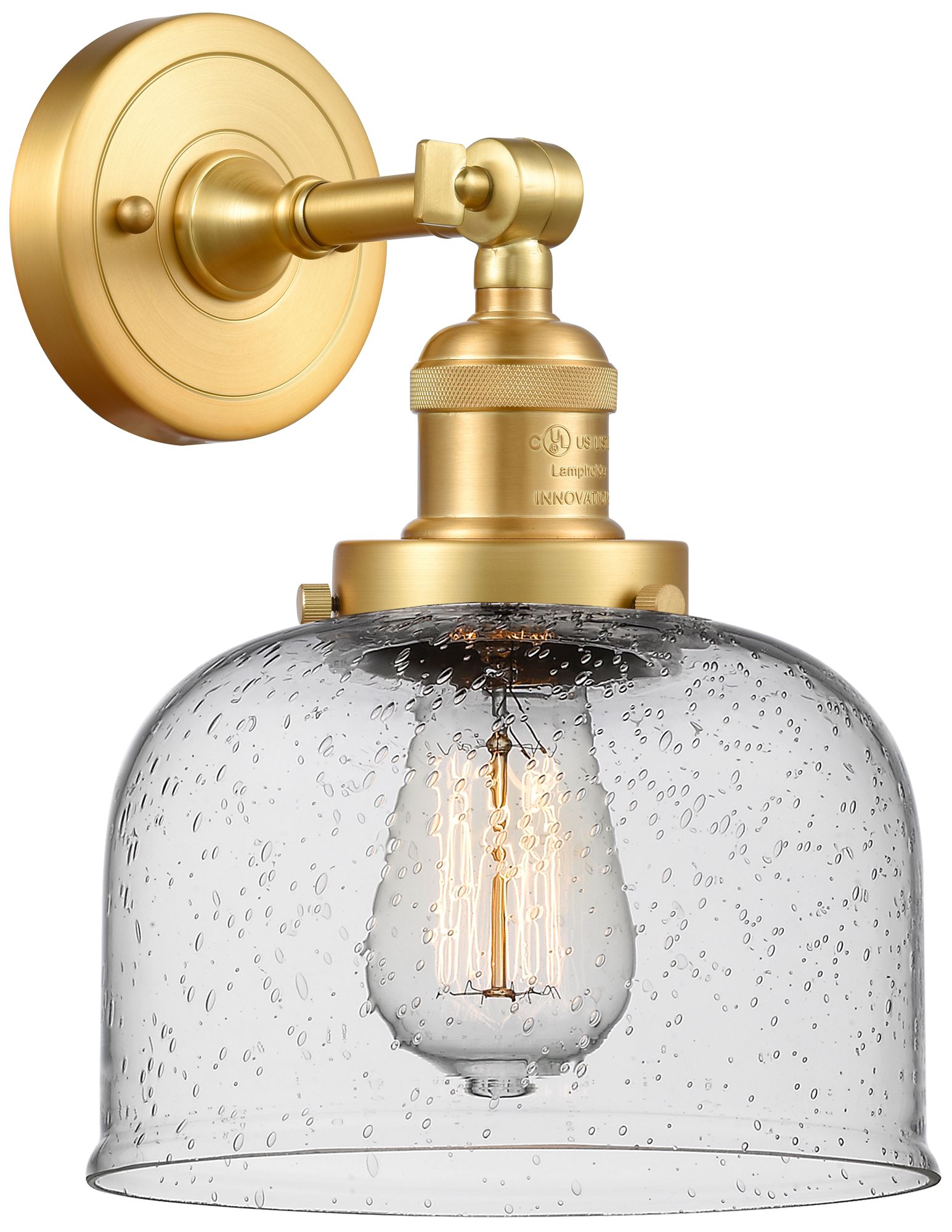 Franklin Restoration Large Bell 8" Satin Gold Sconce w/ Seedy Shade