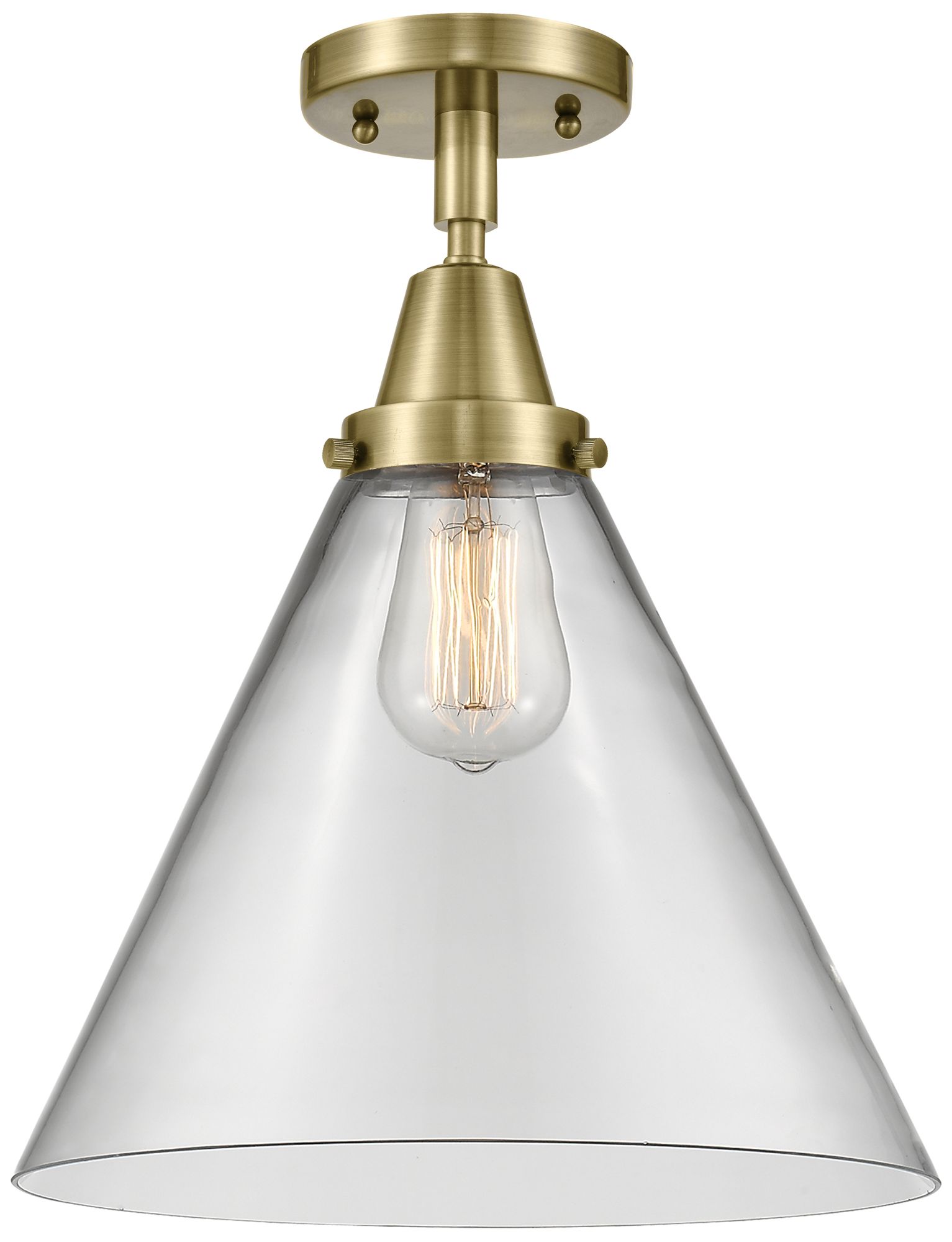 Caden Cone 12" Flush Mount - Antique Brass - Clear Shade