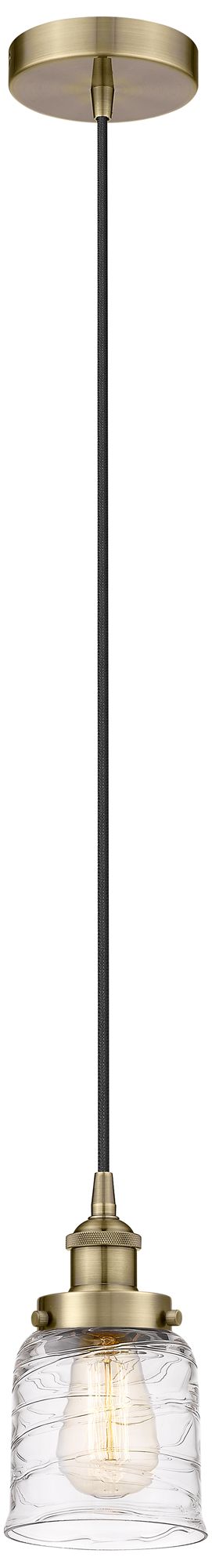 Bell 5" Antique Brass Mini Pendant w/ Deco Swirl Shade