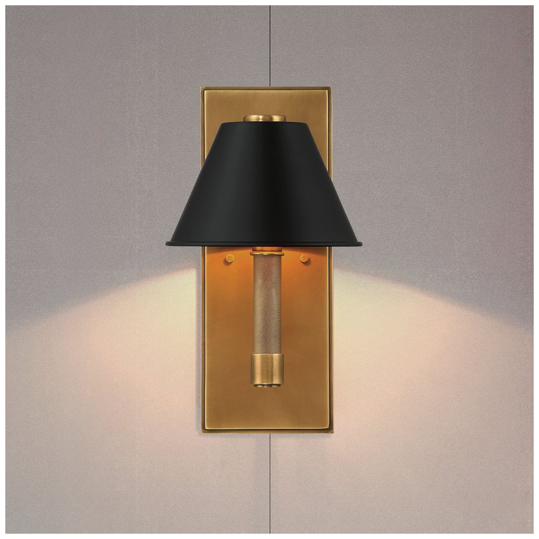 Thesis Mcgill 13" Natural Brass Wall Sconce w/ Matte Black/Gold Metal Shade