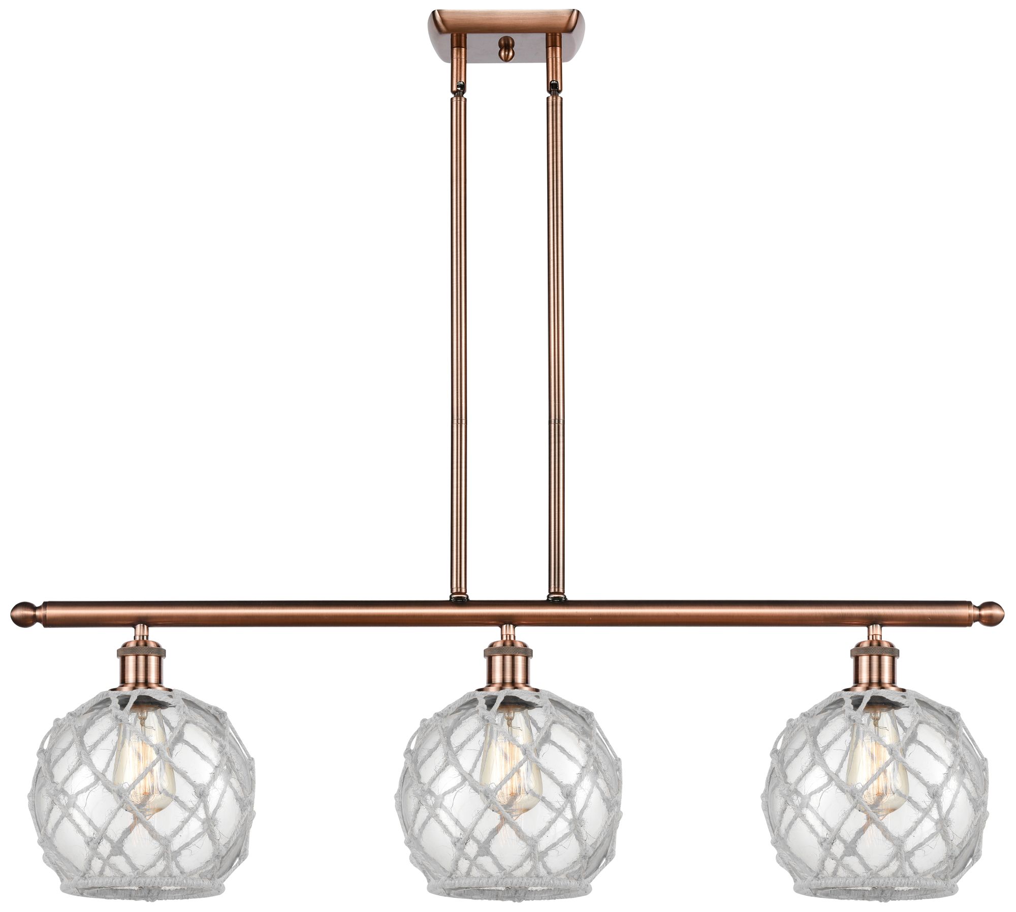 Farmhouse 36"W 3 Light Copper Island Light w/ Clear and White Shade
