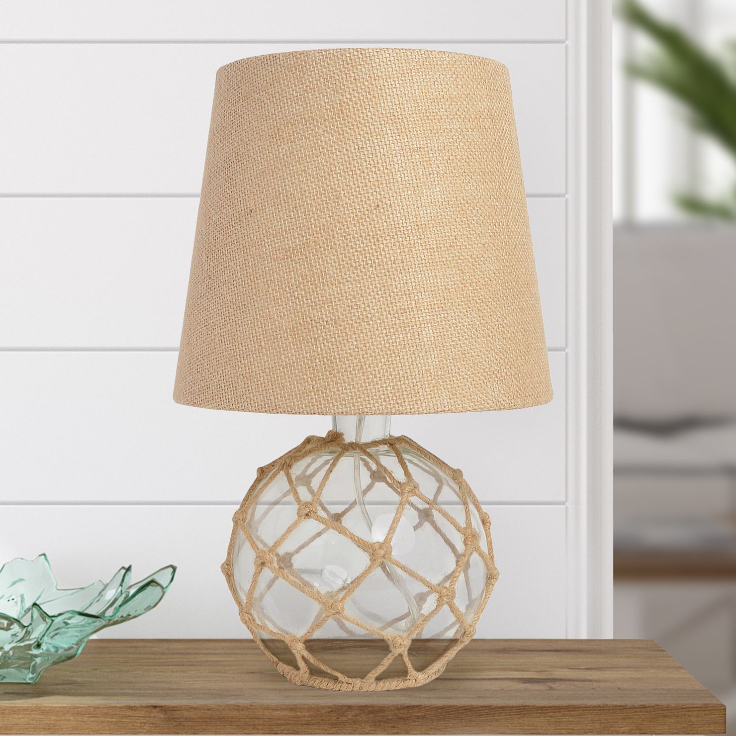 Maritime 14 3/4" High Coastal Rope and Clear Glass Accent Table Lamp