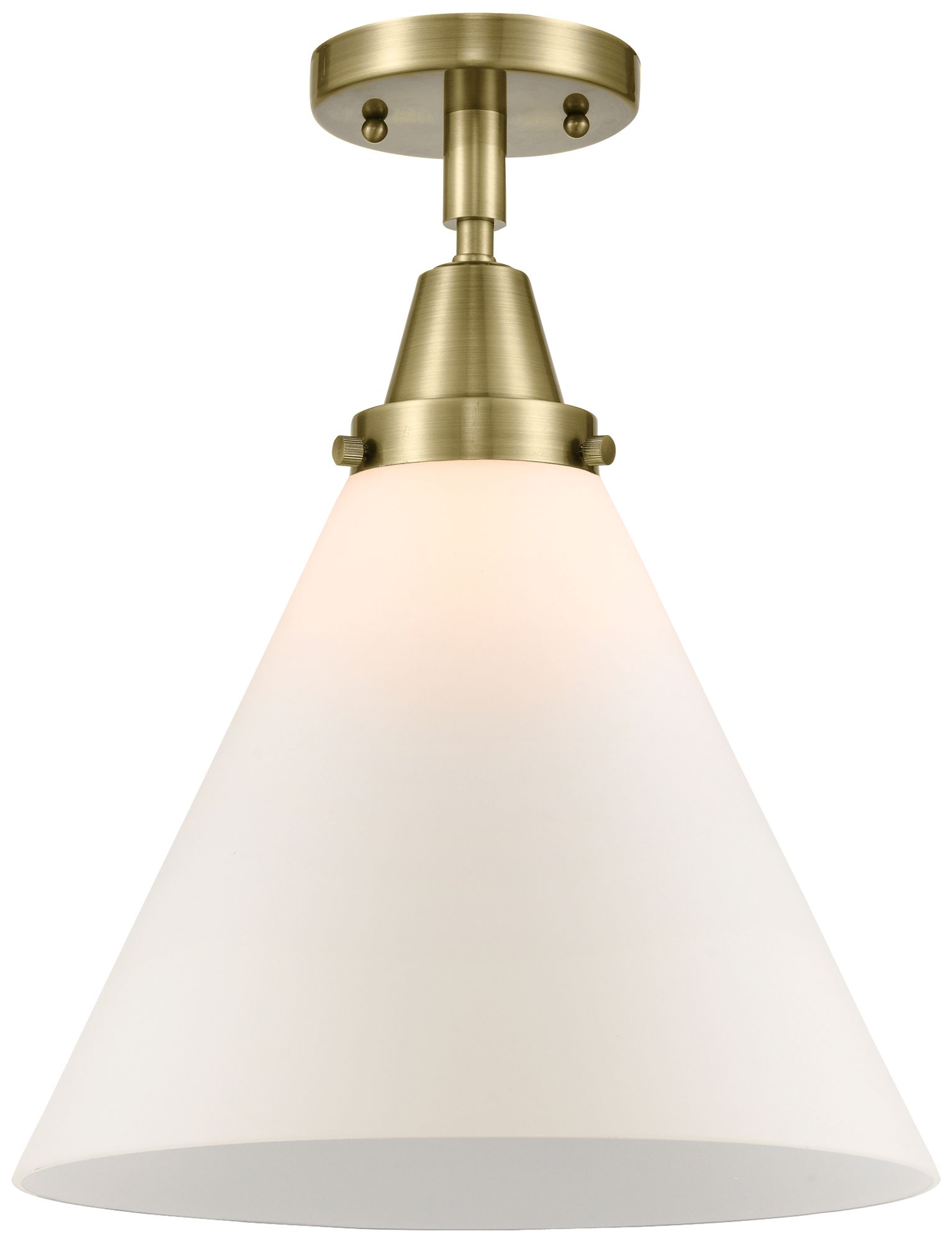 Caden Cone 12" Flush Mount - Antique Brass - Matte White Shade