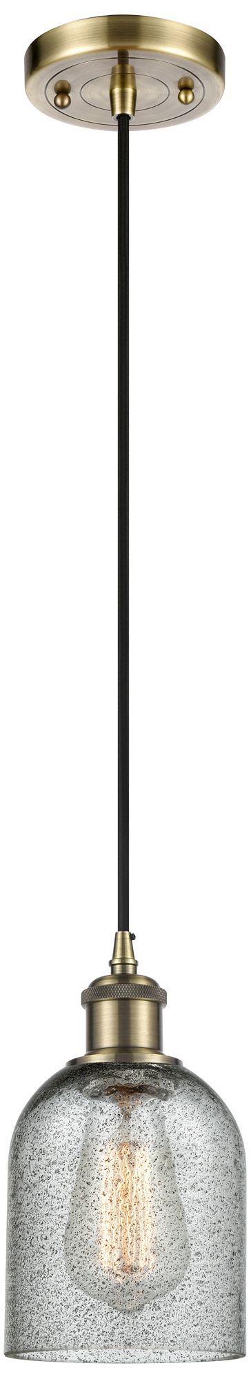 Caledonia 5" Antique Brass Cord Hung Mini Pendant w/ Charcoal Shade