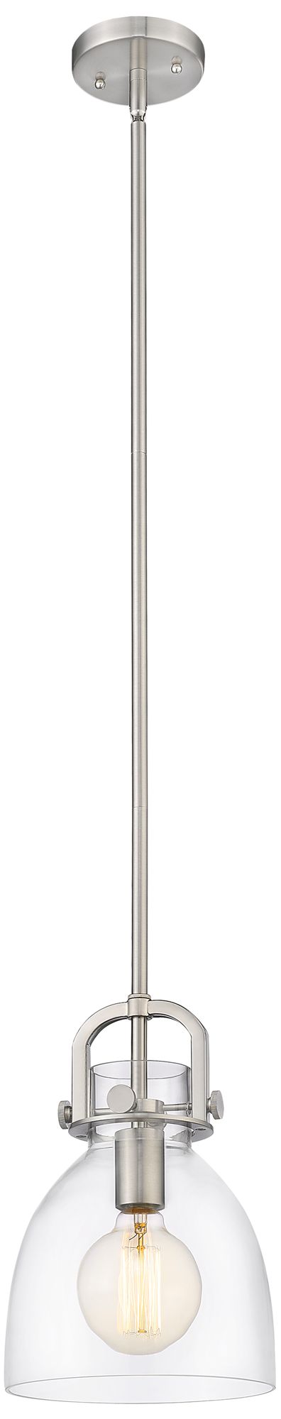 Newton Bell 8" Wide Stem Hung Satin Nickel Pendant With Clear Shade