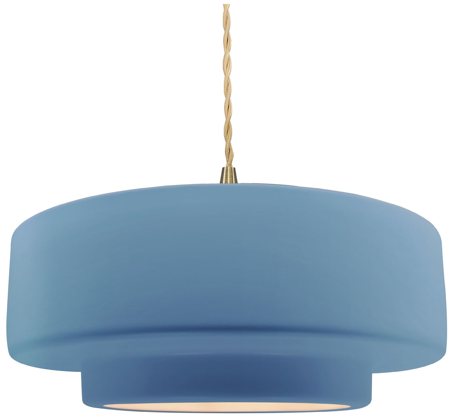 16.25"W Sky Blue Frame Brushed Brass Large Tier Beige Twisted LED Pend