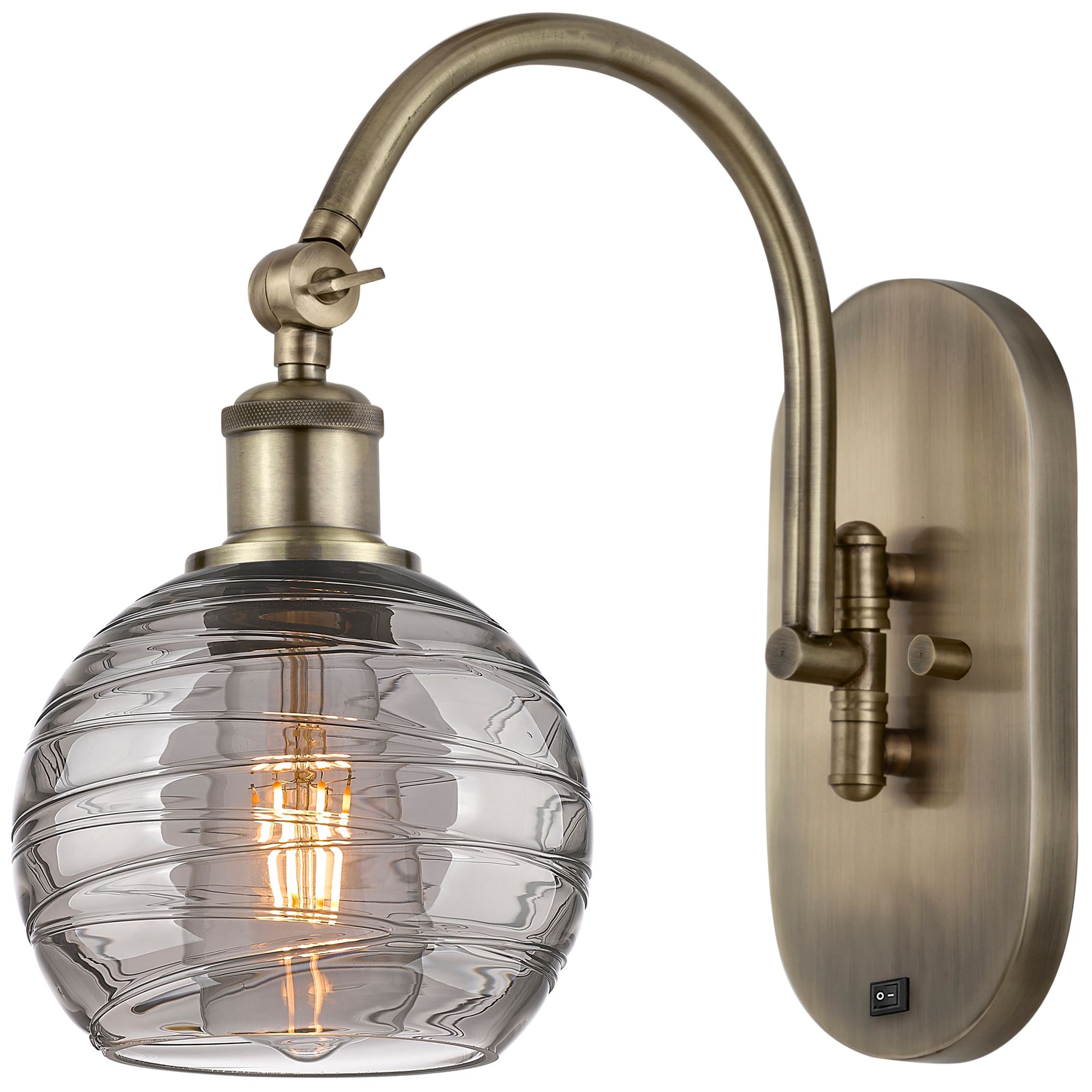 Athens 11.63"H Antique Brass Adjustable Sconce w/ Smoke Swirl Shade