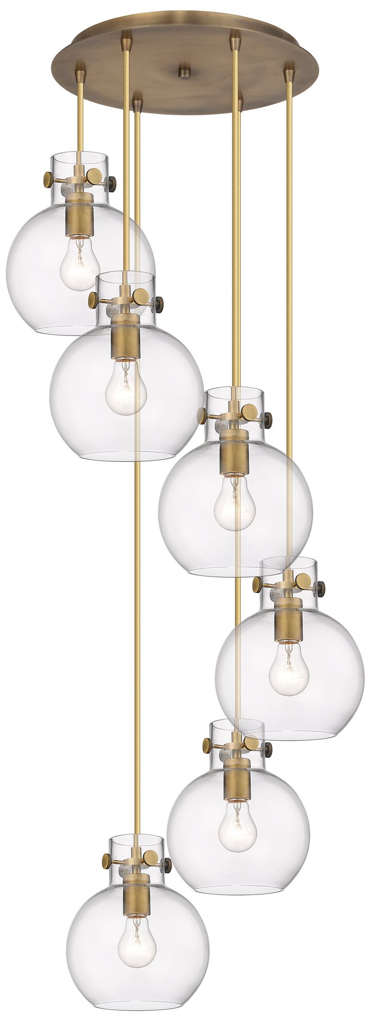 Newton Sphere 39.75"W 3 Light Polished Nickel Linear Pendant w/ Clear