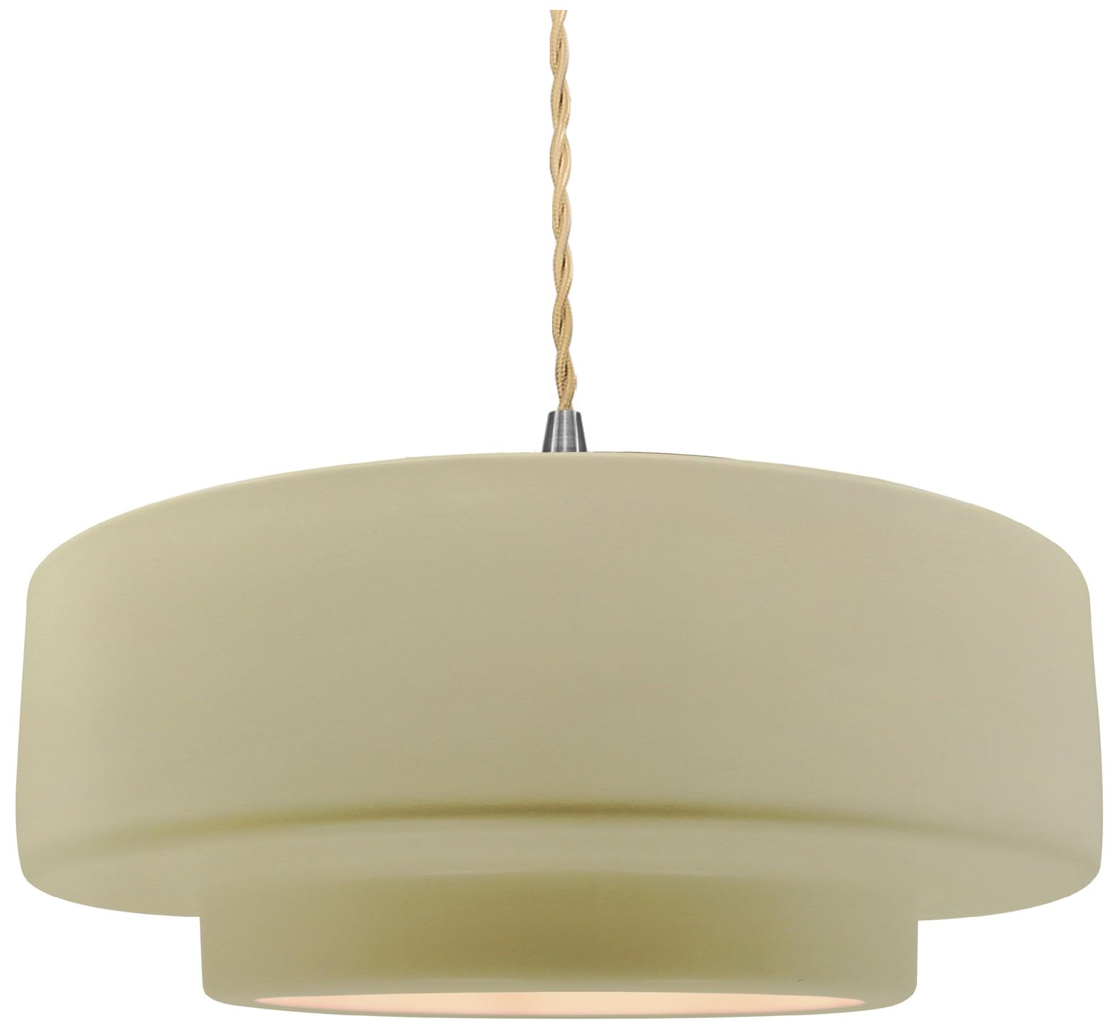 16.25"W Vanilla Gloss Frame Nickel Large Tier Beige Twisted LED Pendan