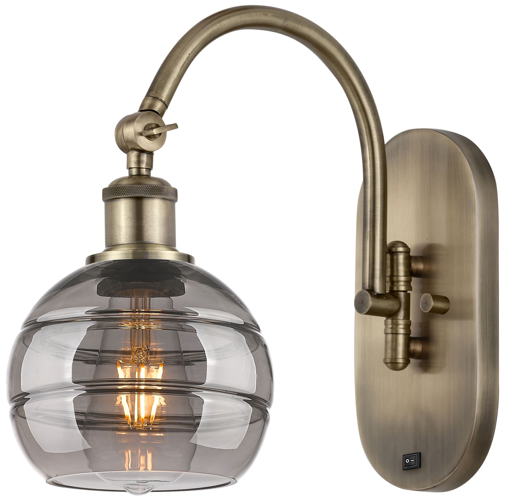 Ballston Rochester 11.38"H Antique Brass Adjustable Sconce w/ Smoke Sh