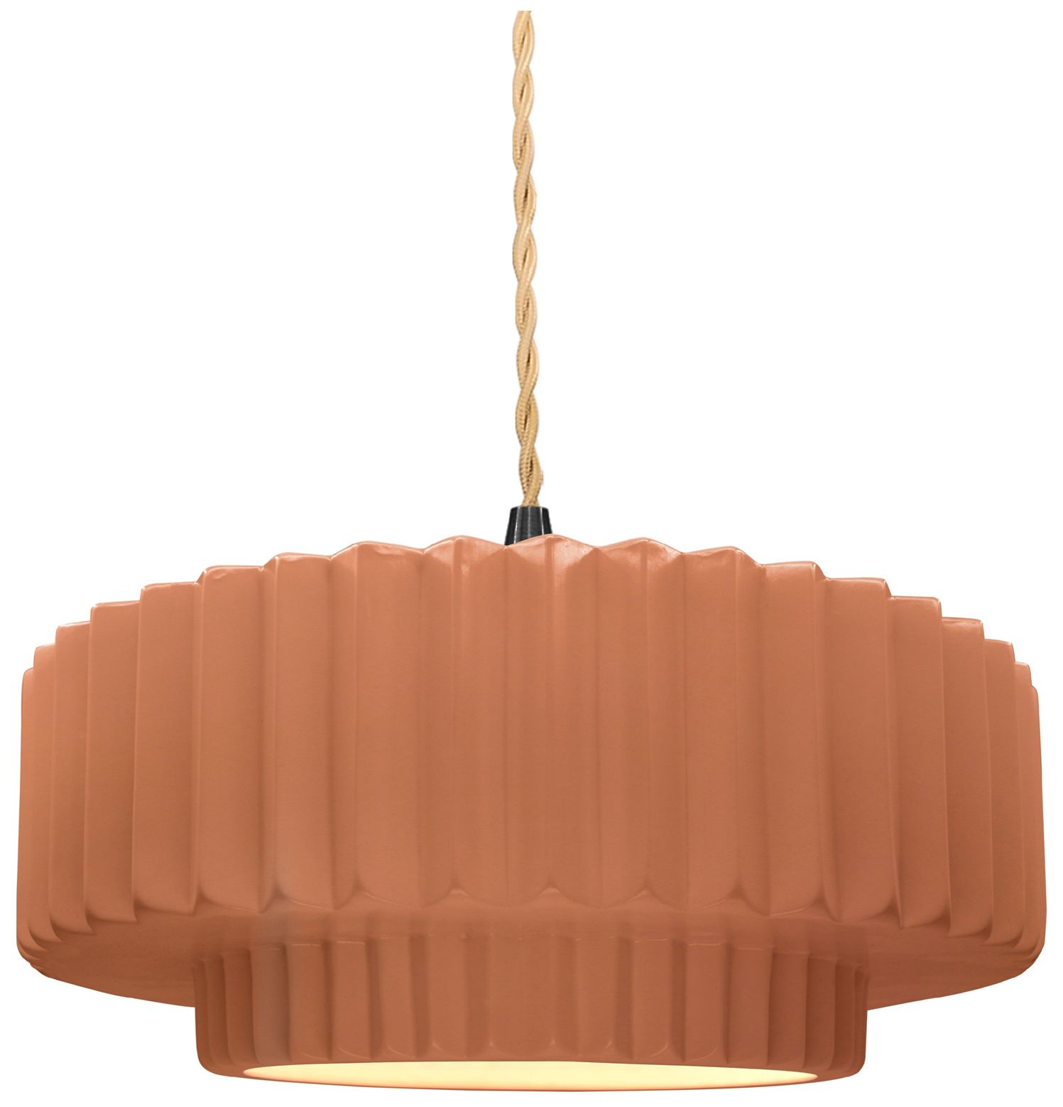 14.5"W Adobe Frame Matte Black Tier Pleated Beige Twisted LED Pendant