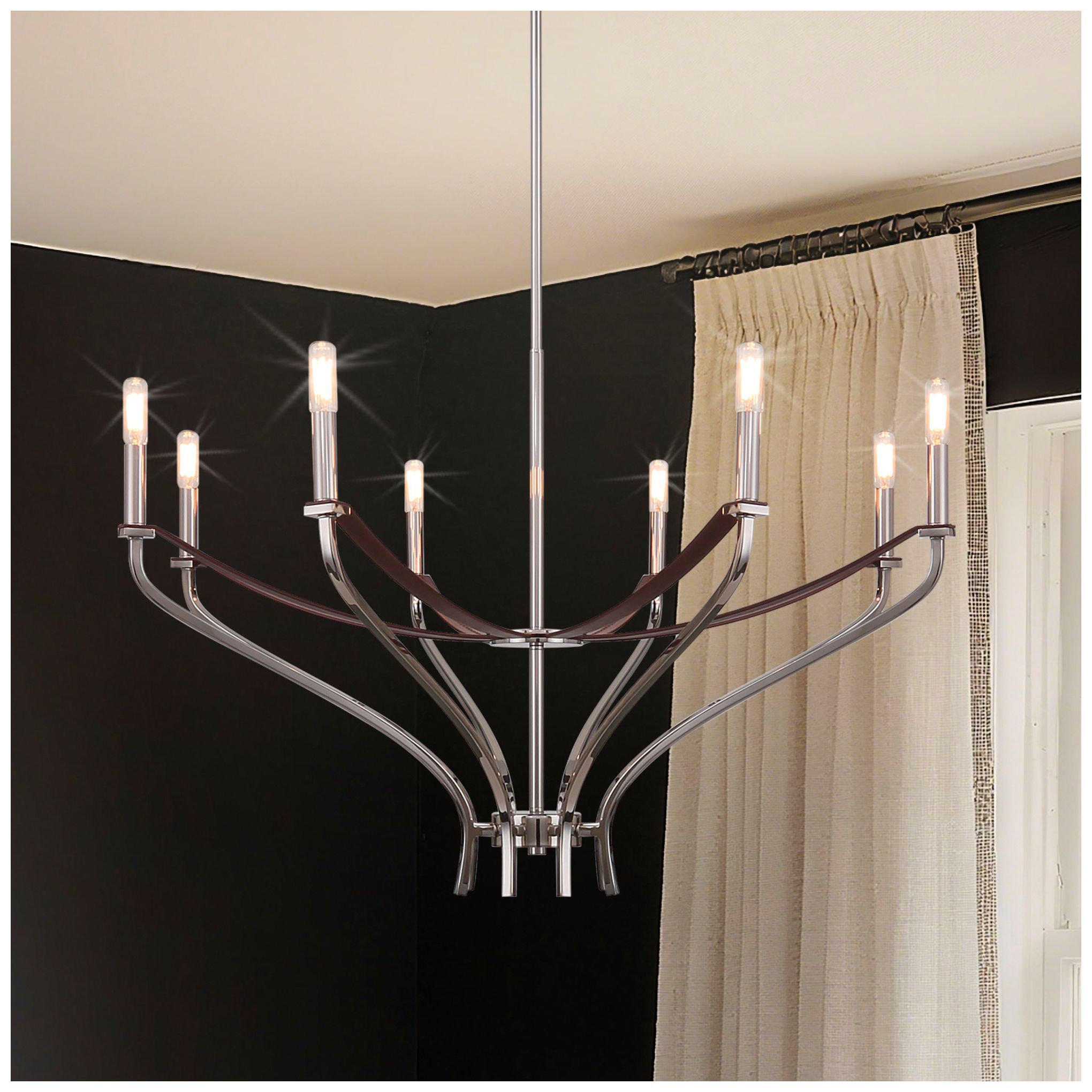 Thesis Sussex 36" 8 Lt Polished Nickel / Dark Brown Faux Leather Chandelier
