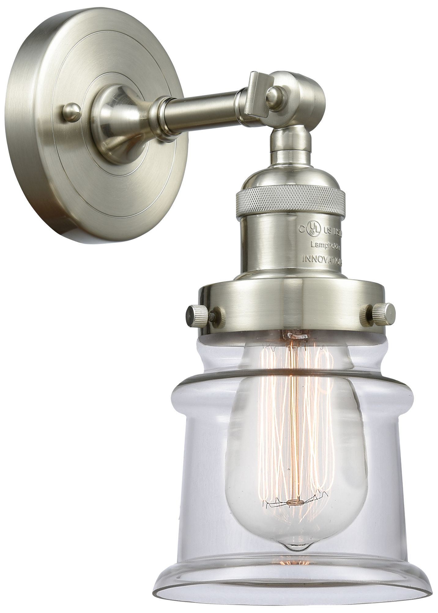 Franklin Restoration Small Canton 5" Brushed Nickel Sconce w/ Clear Sh