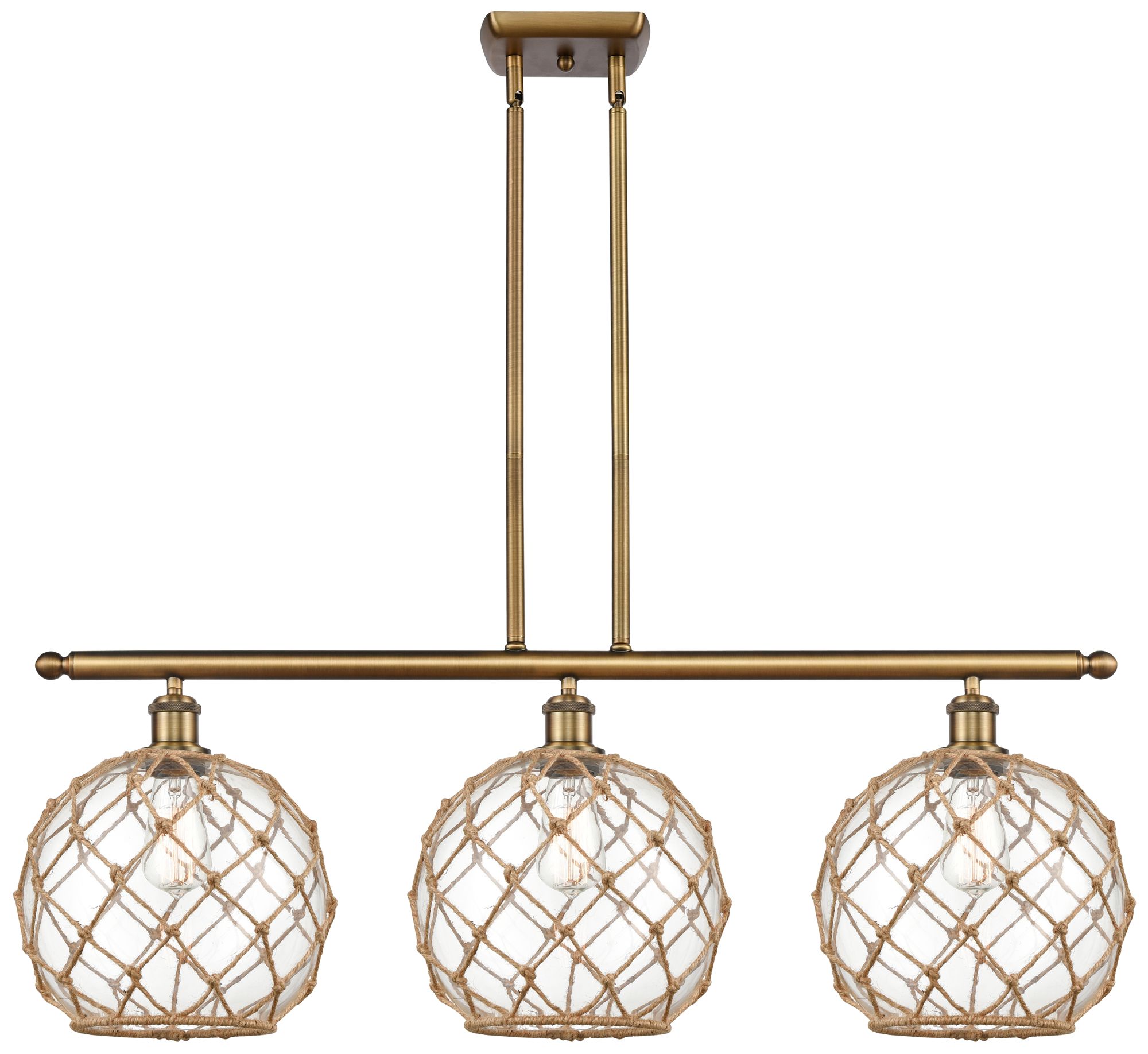 Large Farmhouse 36"W 3 Lt Brushed Brass Island Light w/ Clear & Br