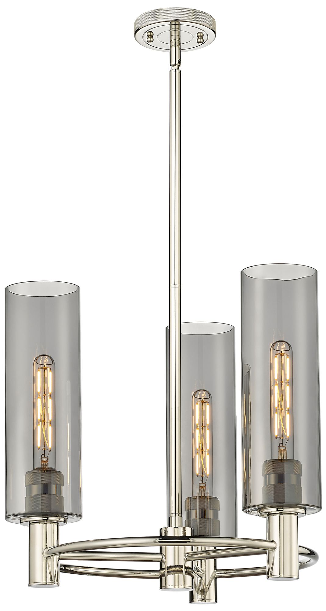 Crown Point 18"W 3 Light Polished Nickel Stemmed Pendant w/ Smoke Shad