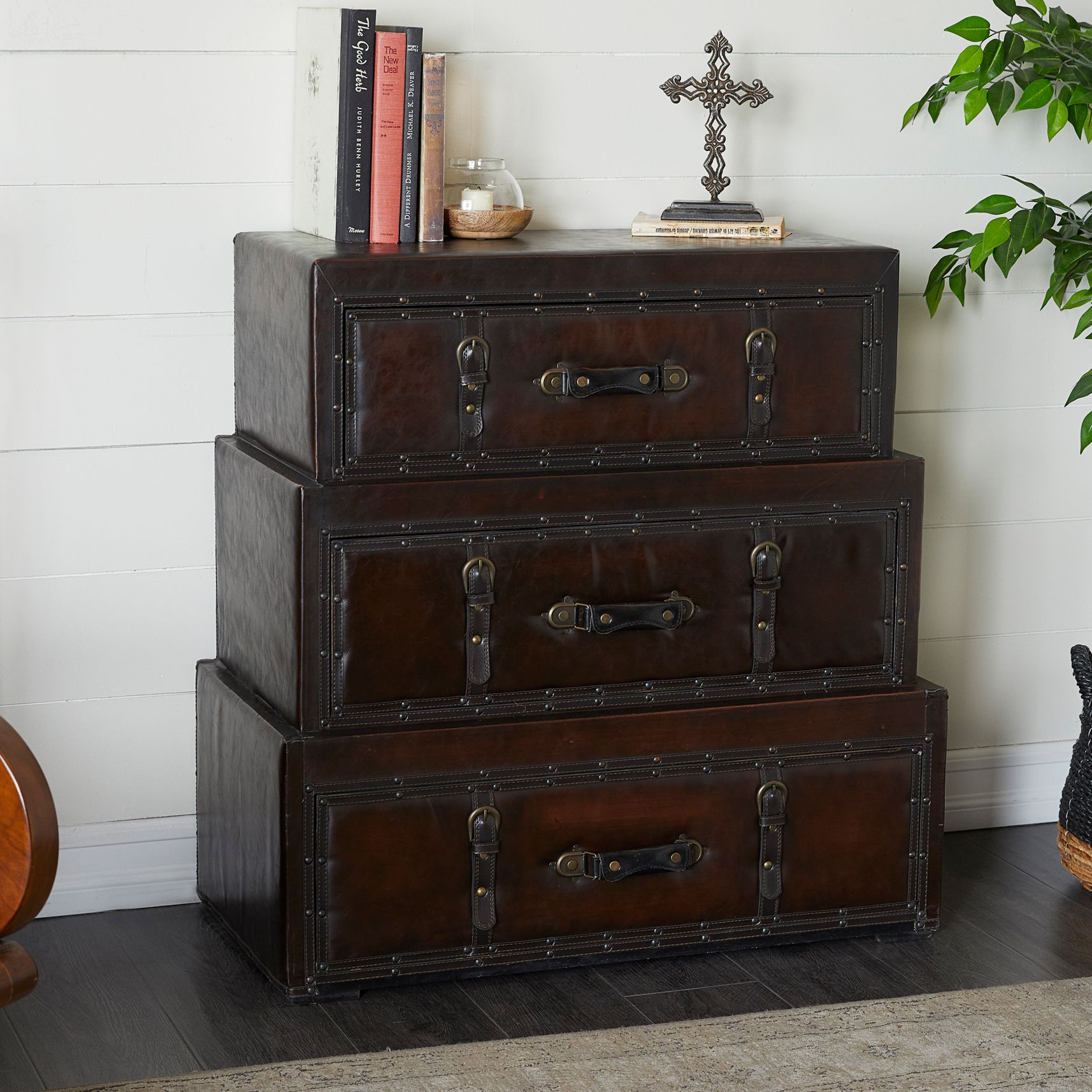 Wren 31 3/4" Wide Dark Brown Wood 3-Drawer Trunk Chest