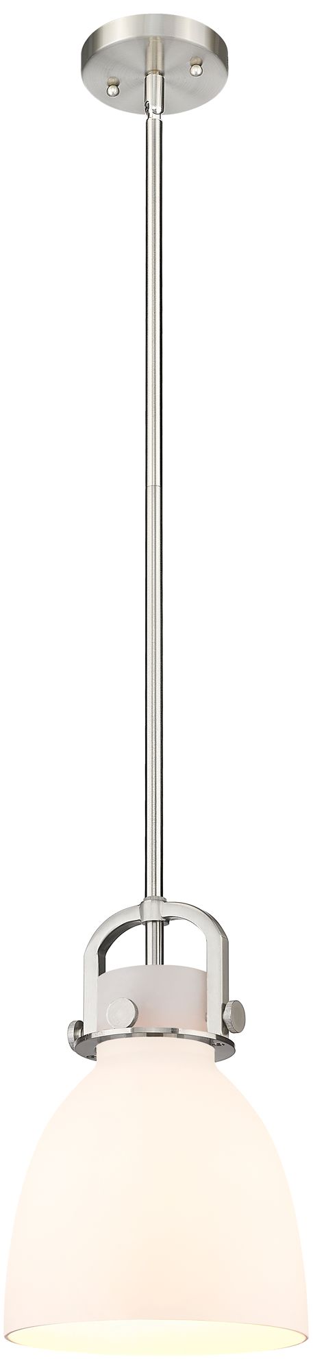 Newton Bell 8" Wide Stem Hung Satin Nickel Pendant With White Shade