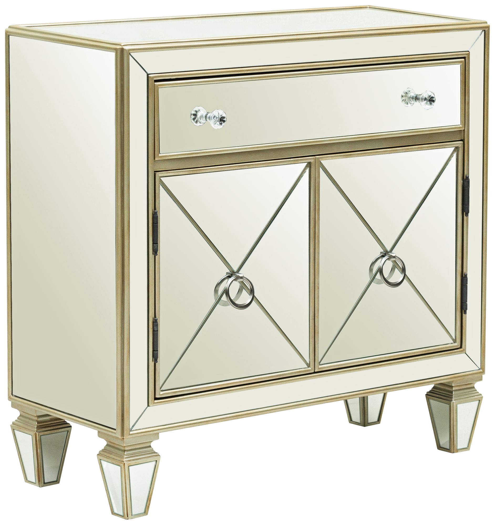 Glam 32" Wide Silver Wood Mirrored 2-Door Chest