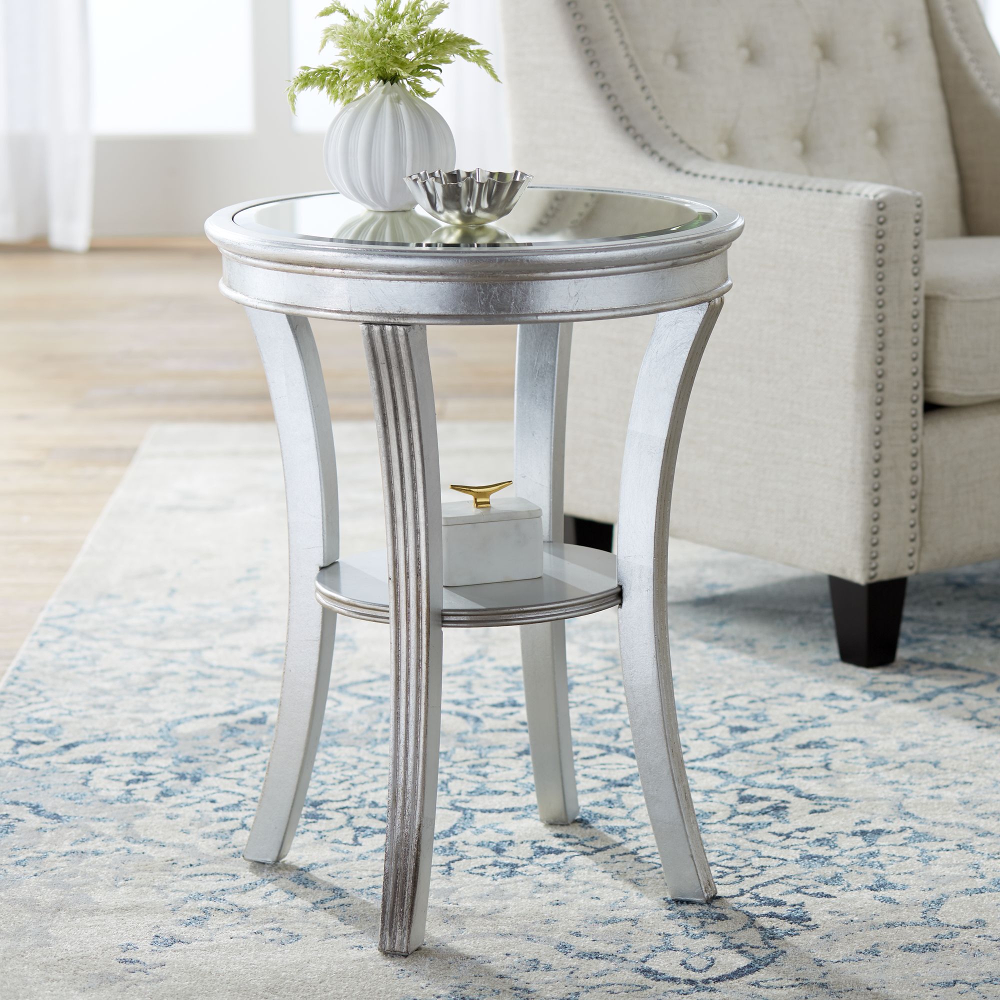 Brookhurst 20" Wide Kenney Silver Leaf Round Accent Table