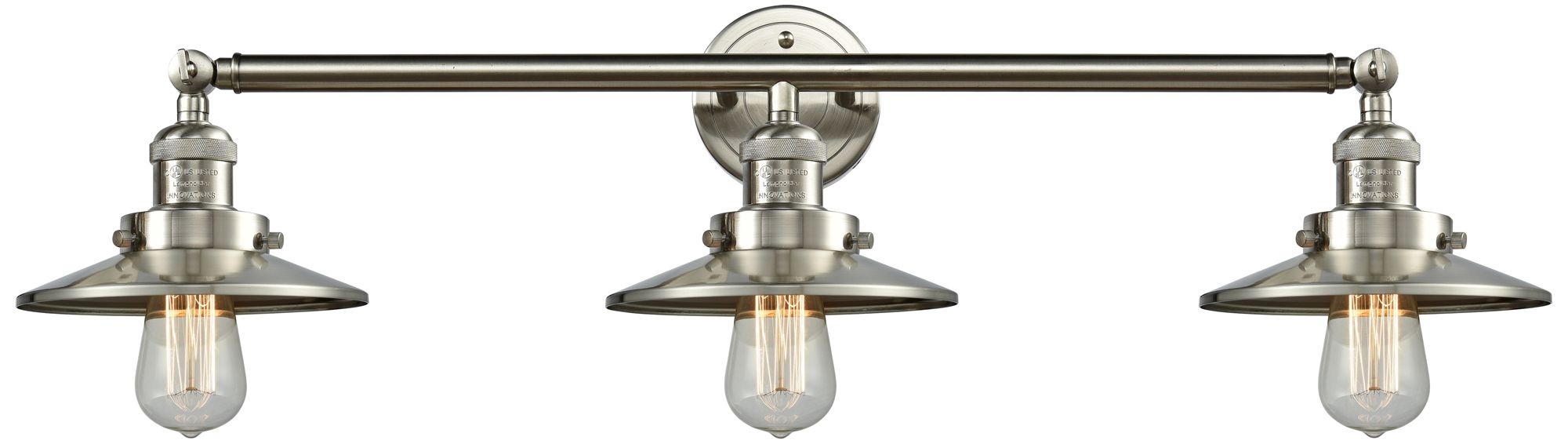 Railroad Satin Nickel Shades 32" Wide 3-Light Bath Light