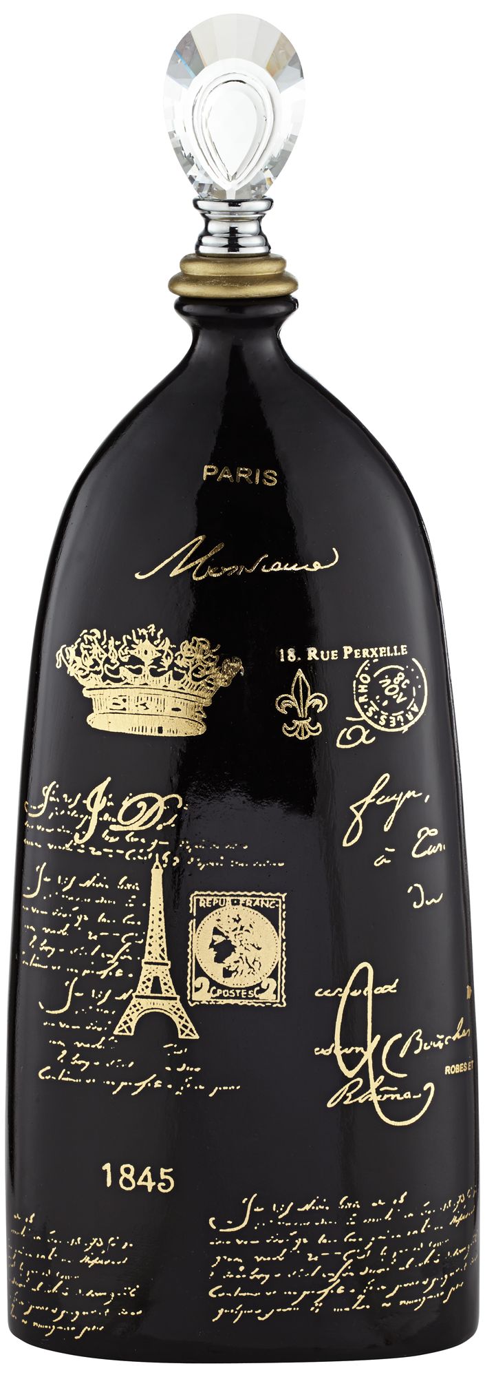 French Script 23" High Decorative Black Ceramic Bottle