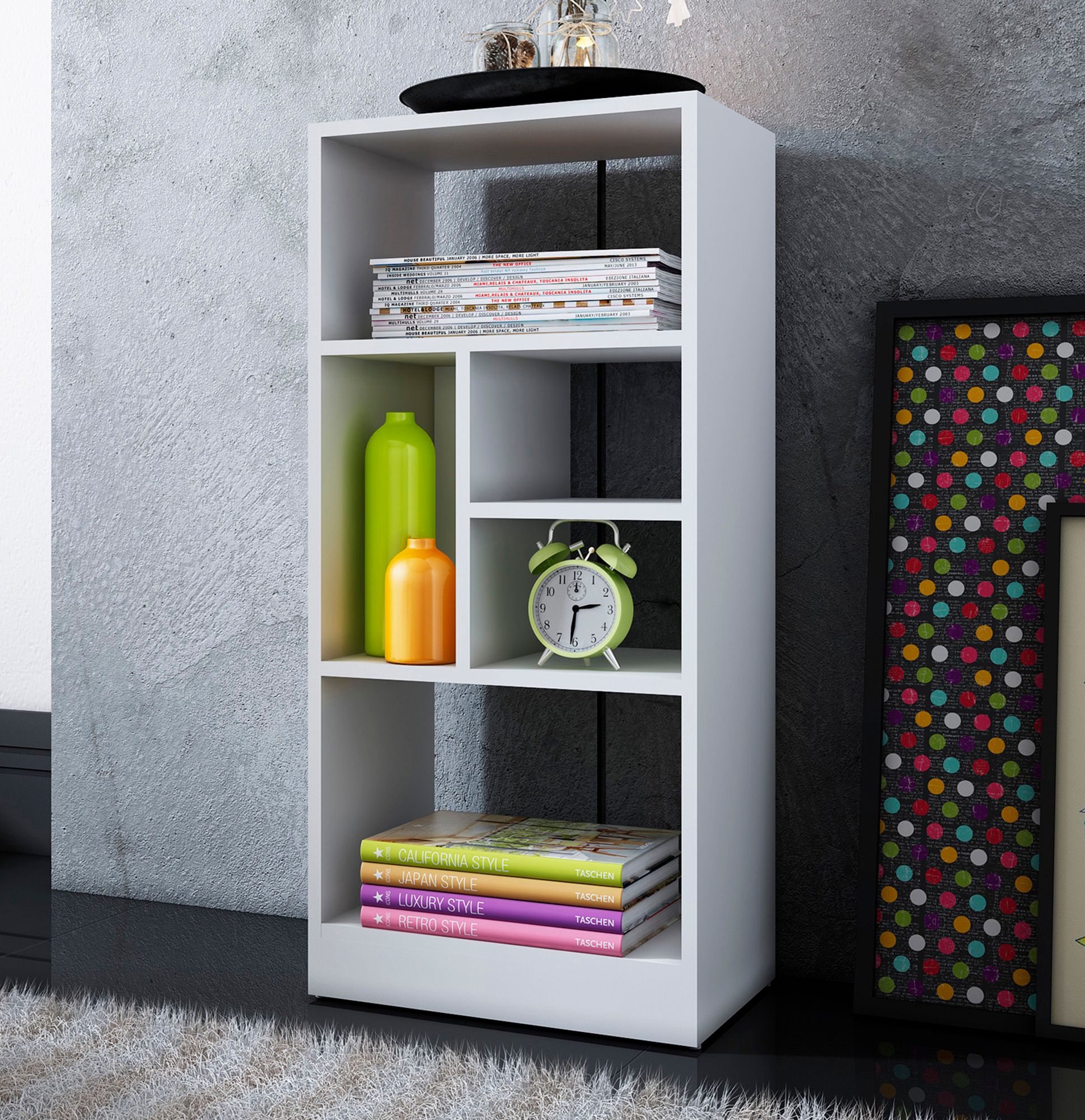 Valenca 35 1/2" High 5-Shelf White Wood Modern Bookcase