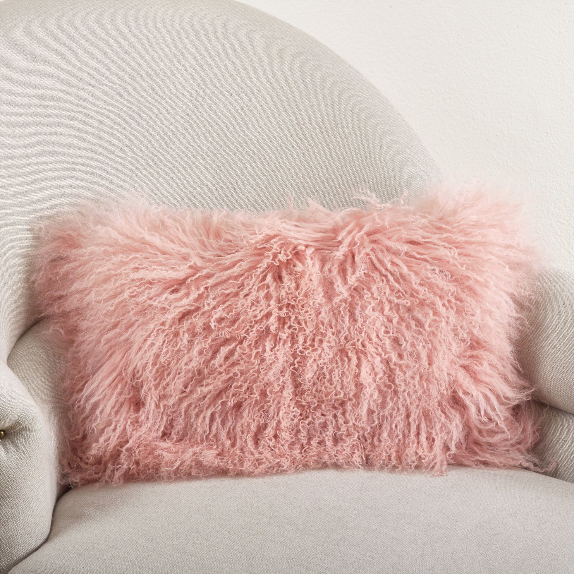 Mongolian Pink Fur 20"x12" Lumbar Pillow