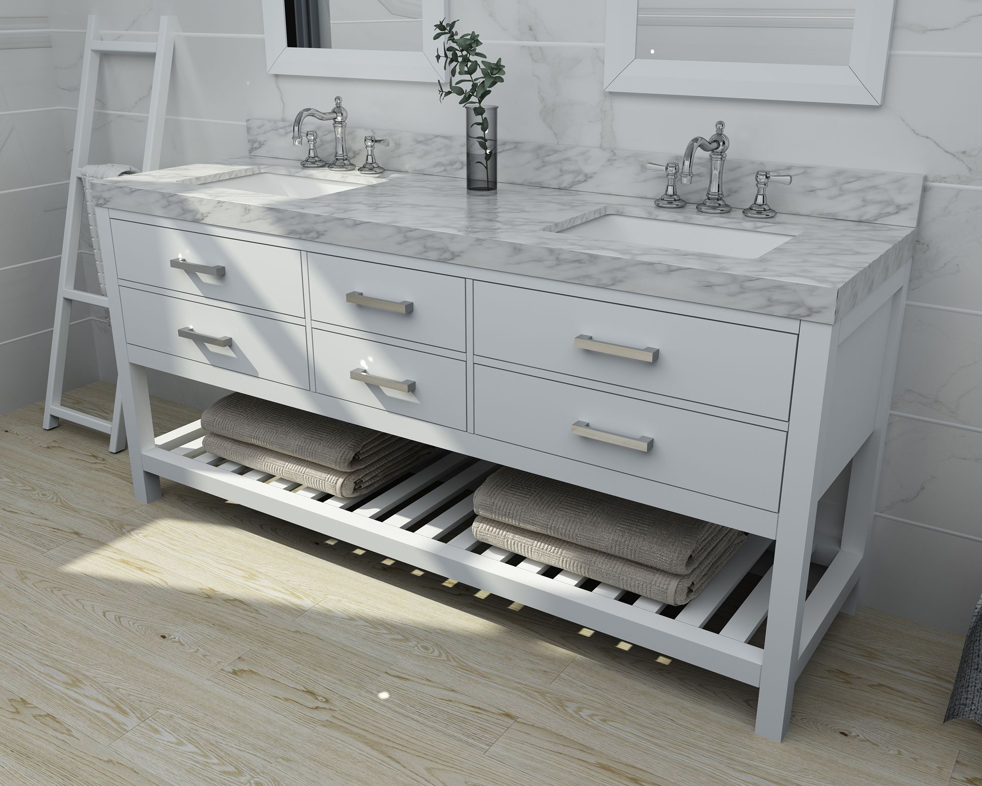 Elizabeth White 72" Wide Italian Marble Double Sink Vanity