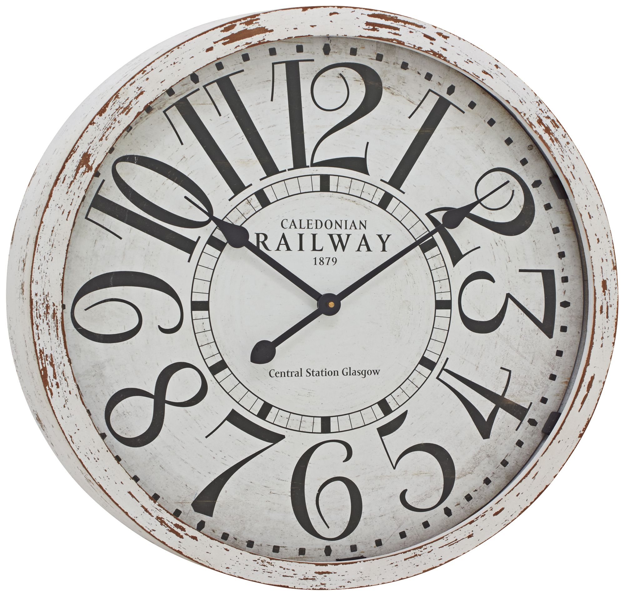 Barnyard Distressed White Wood 24" Round Wall Clock