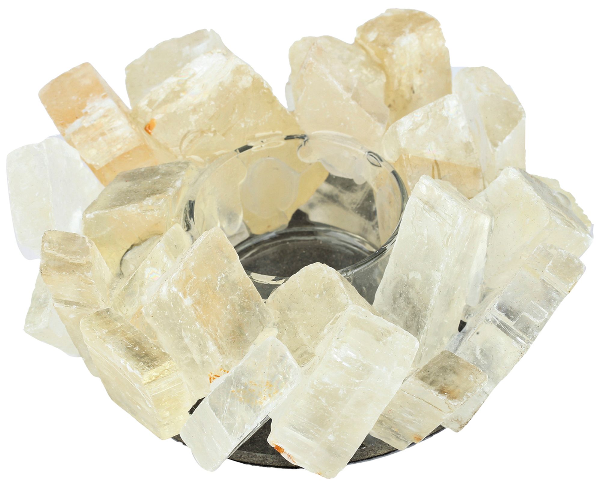 Bonita 3" Wide White Stone and Clear Glass Candle Holder