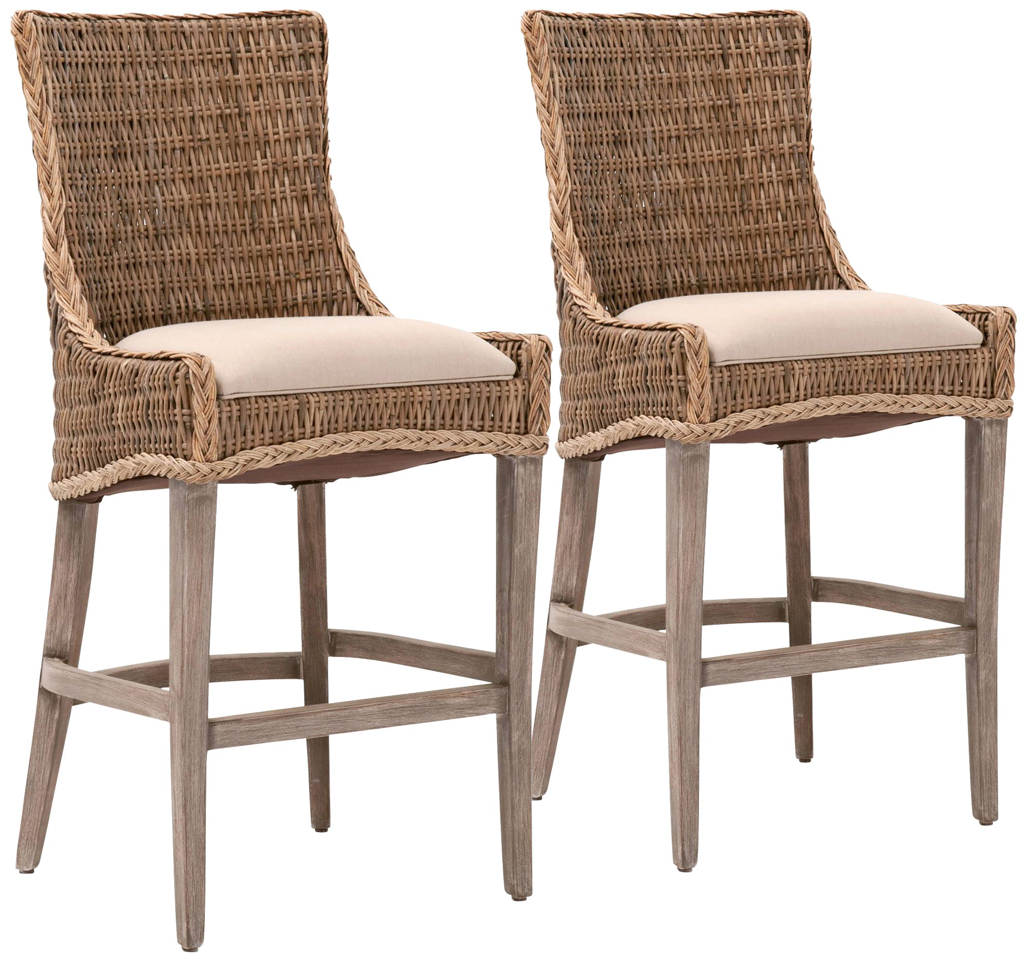 Greco 30" Gray Wicker and Mahogany Barstool Set of 2