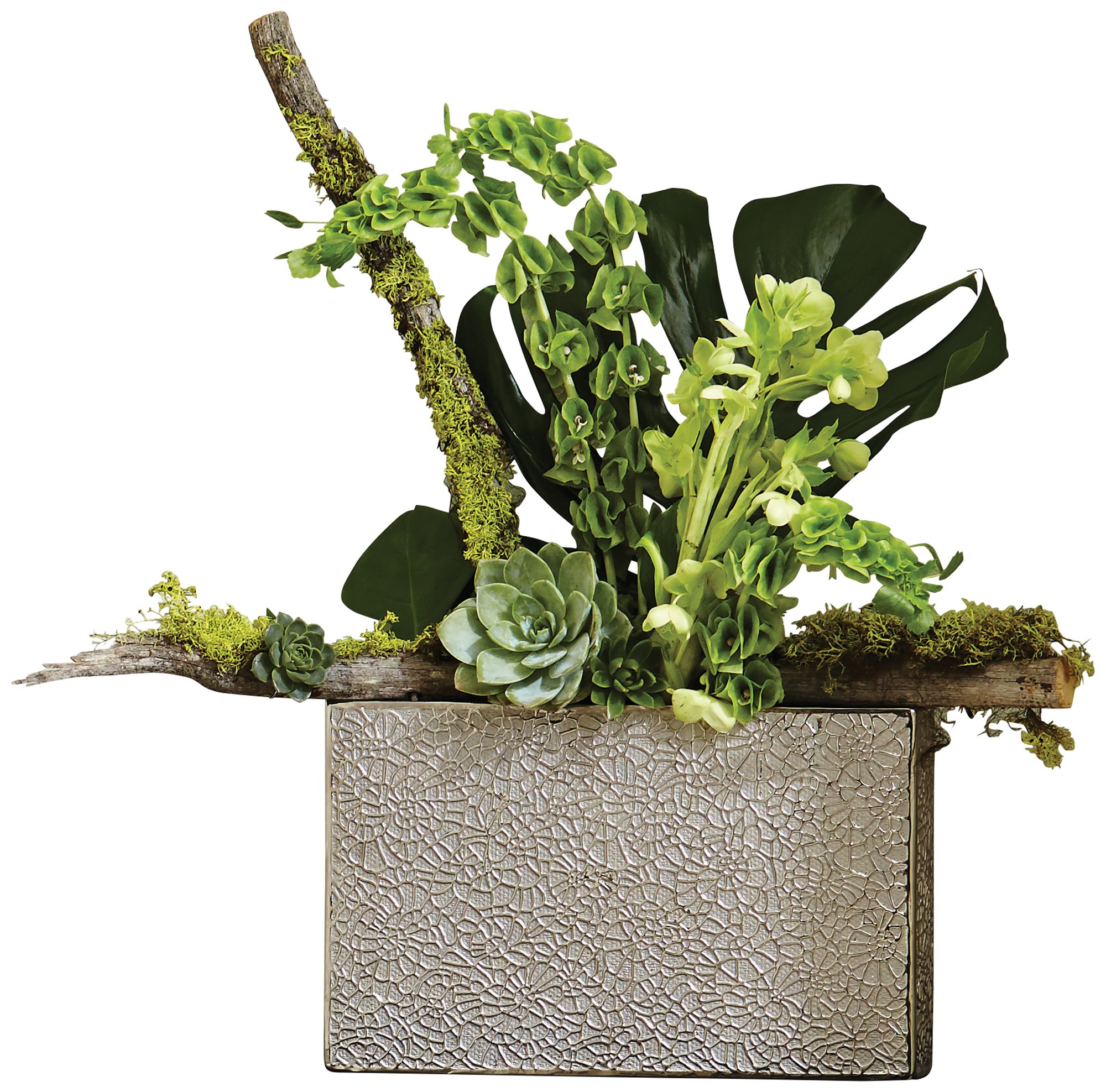 Organic Lace 16" Wide Electroplated Silver Textured Vase